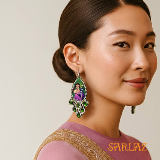 Gaze of Seranda — Round Gemstone Frame — Peacock Art Earrings