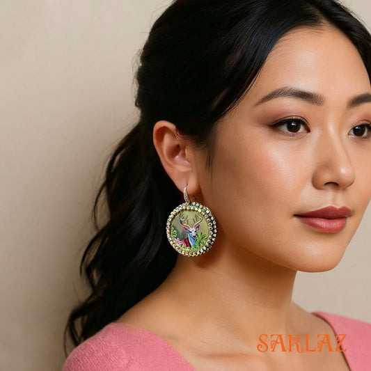 Harina — Circle shape Embellishment — Deer Art Earrings