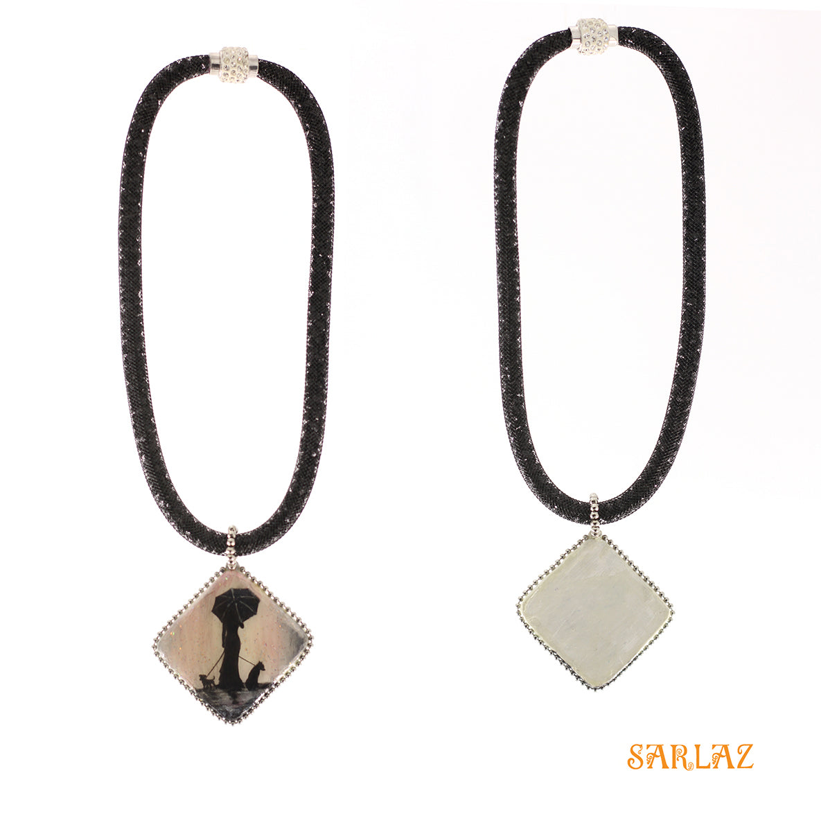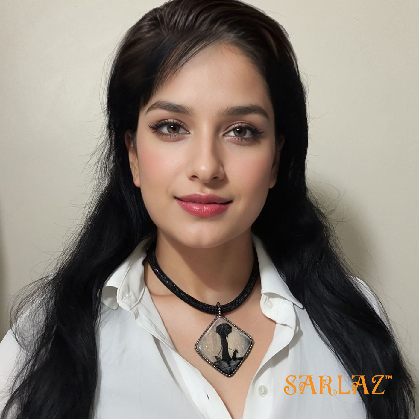 The Miracle with Paws Pendant Necklace is a heartfelt piece of wearable art that speaks to the soulful bond between humans and animals. The pendant, sculpted freehand from polymer clay, showcases a meticulously hand-painted silhouette of a woman holding an umbrella, accompanied by her loyal dogs. The serene scene is brought to life with delicate details and a dreamy background, all sealed under a high-premium gloss finish for an elegant touch.