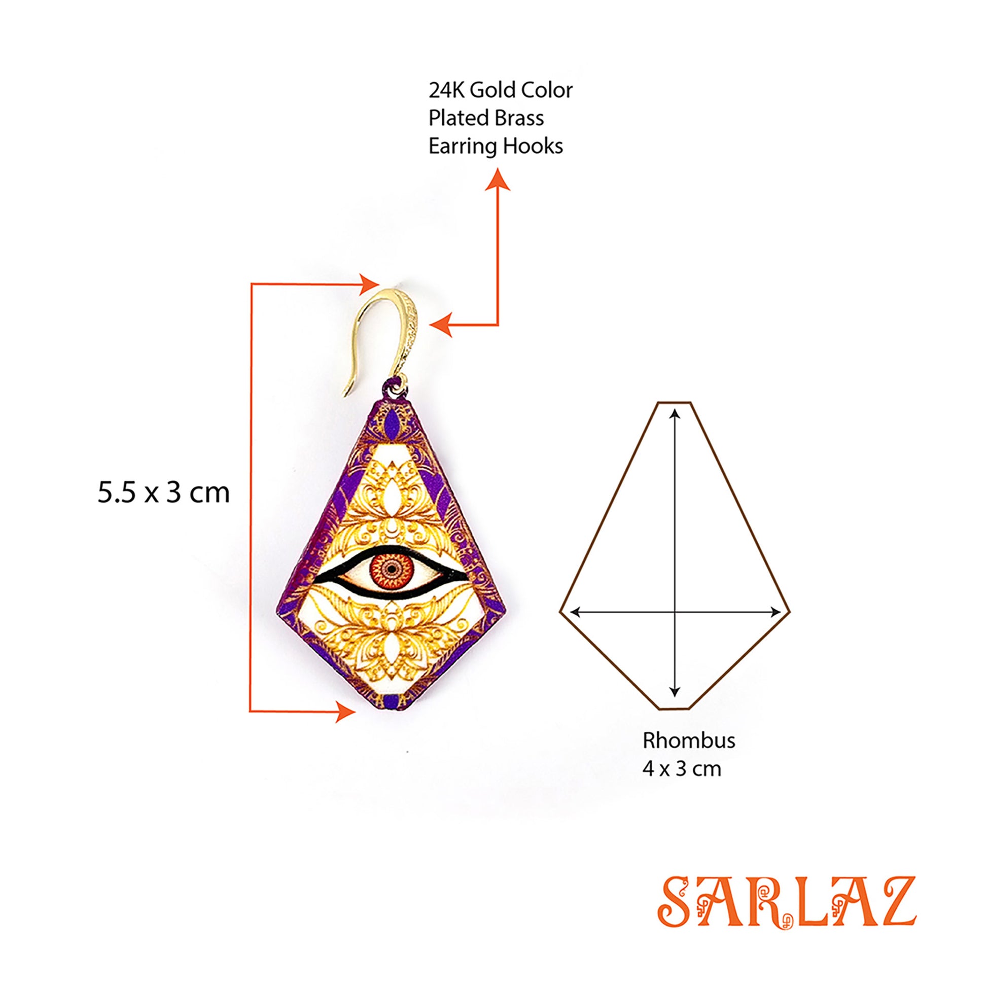 Earring Hook: Hypoallergenic 24K gold colour plated brass.