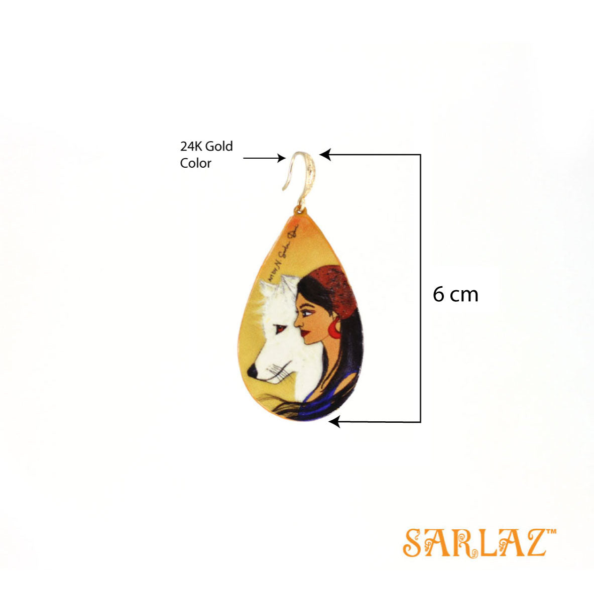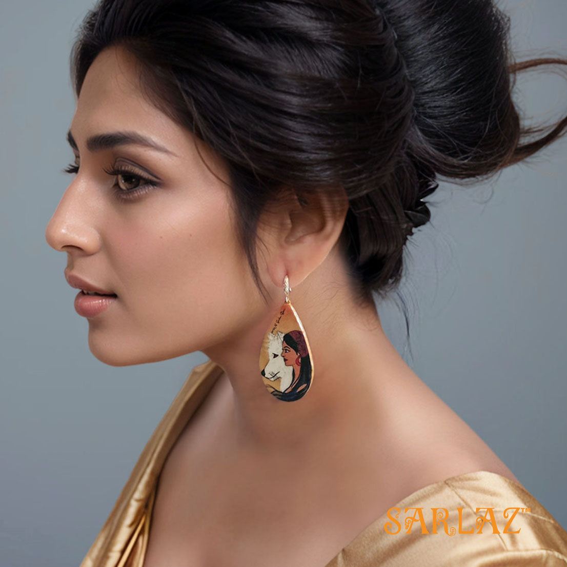 Art title: Akira's Harmony earrings, where the hues of sunset dance with the whispers of emotion. In the delicate artistry of Akira, behold a girl and her white wolf, locked in an extraordinary gaze toward the horizon. Their bond transcends time and space, weaving a tapestry of love and loyalty that knows no bounds. Feel the warmth of the sunset palette beneath your fingertips, as this earring becomes a canvas of emotion. Let the tender connection of Akira's tale adorn your ears, whispering secrets of friendship and unity with every sway.