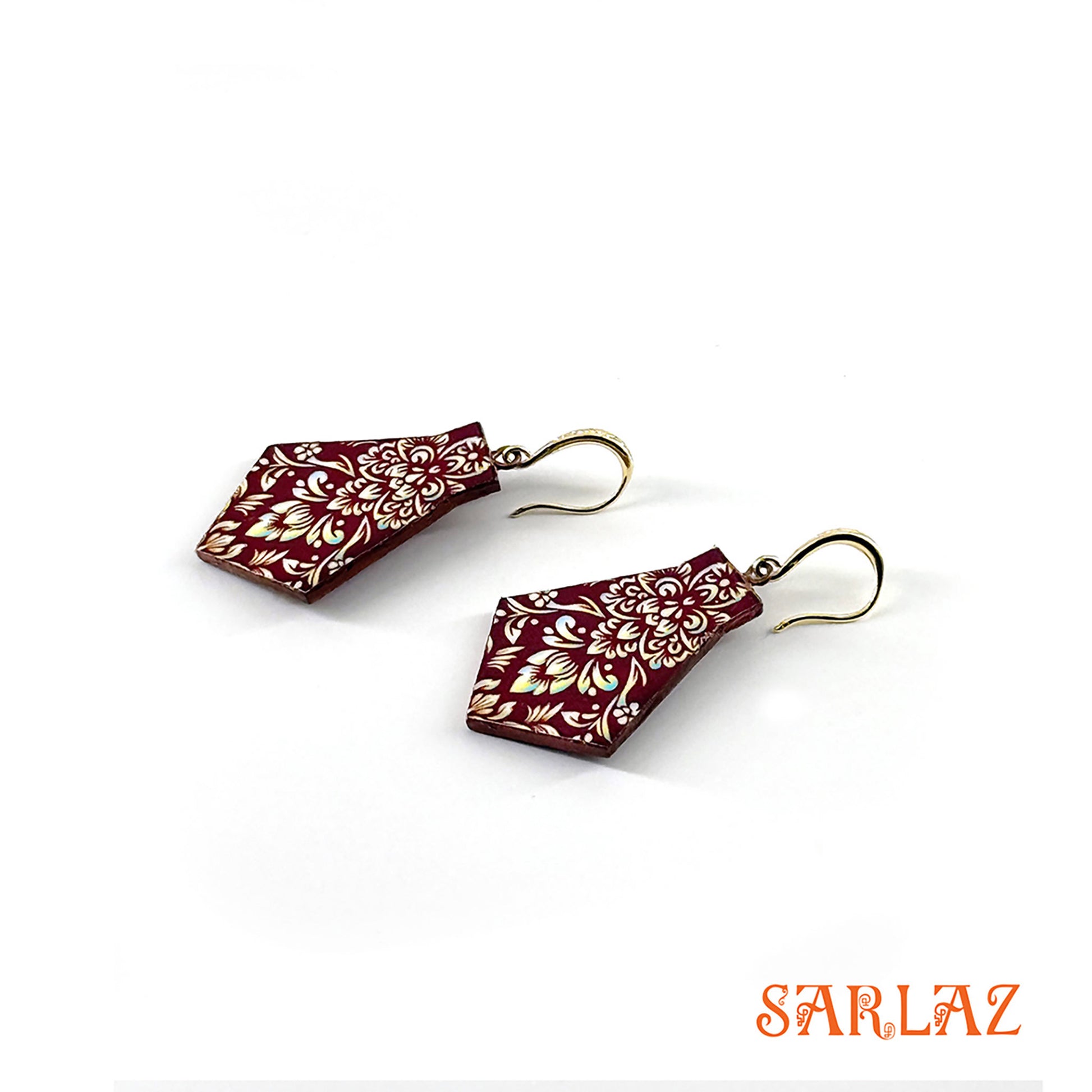 With a floral burst in red and ivory, this trapezoid-shaped design on wood offers a powerful nod to traditional craftsmanship. A blend of beauty and bold form.