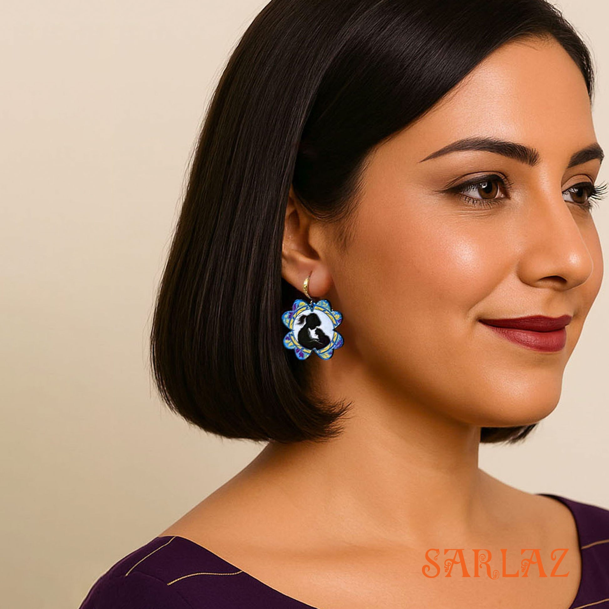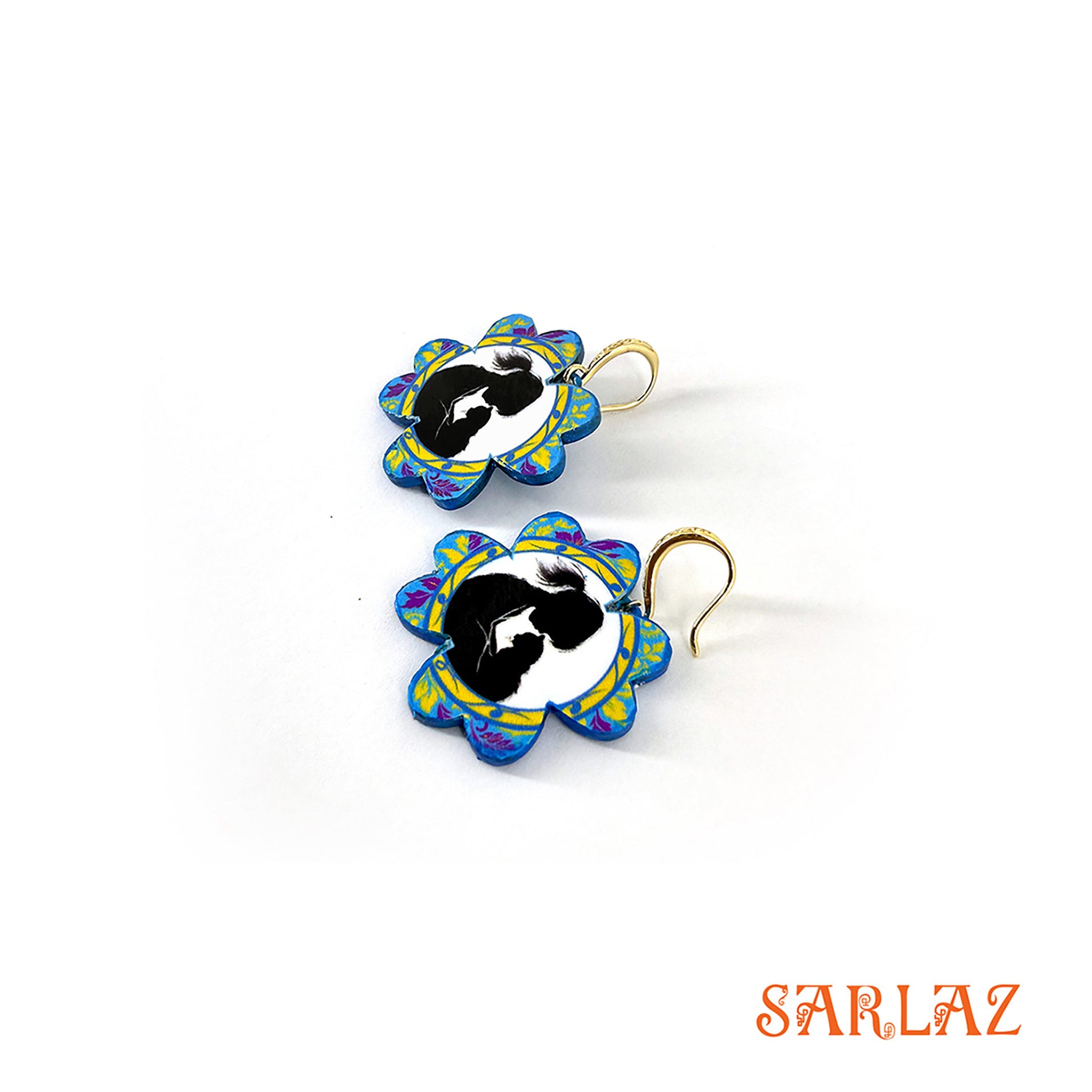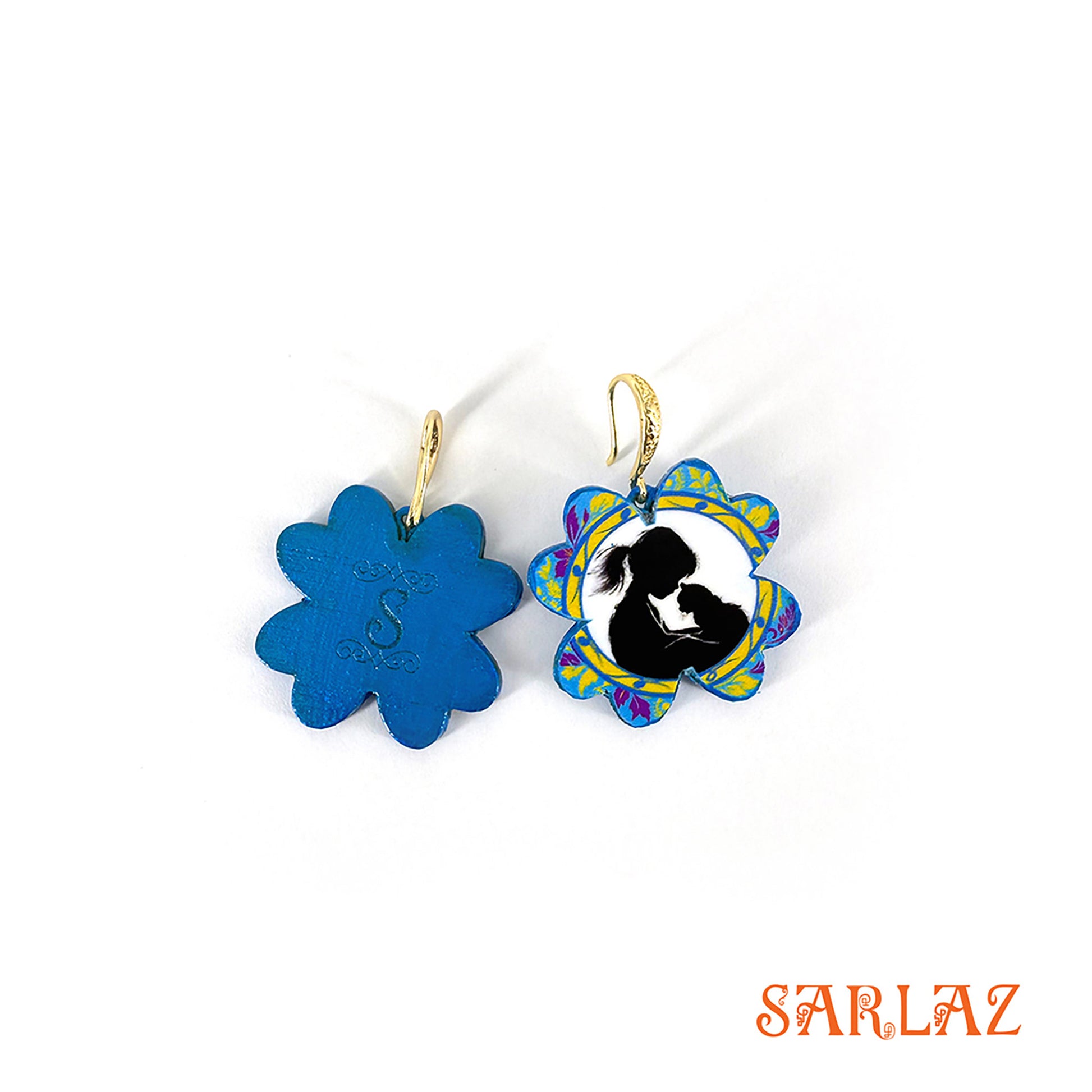 Hand-painted on wood in a four-leaf clover shape, this design captures the tender silhouette of a little girl and her cat sitting closely together. With soft floral accents encircling them, the piece reflects the warmth, trust, and magic of childhood companionship.