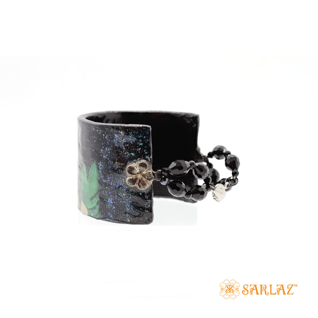 Cuff > Handcrafted and painted. It has shimmer and glitter on it.