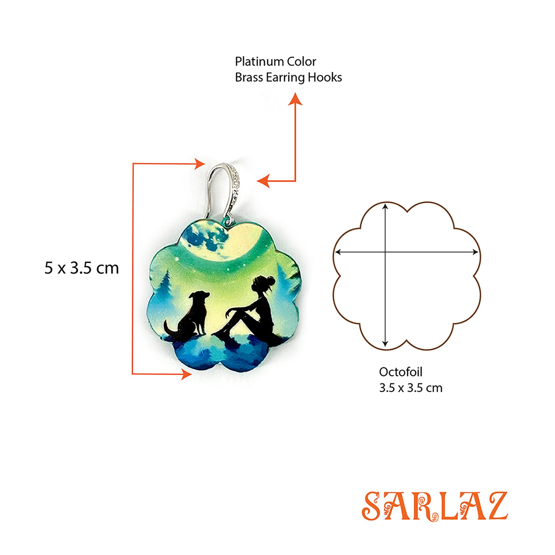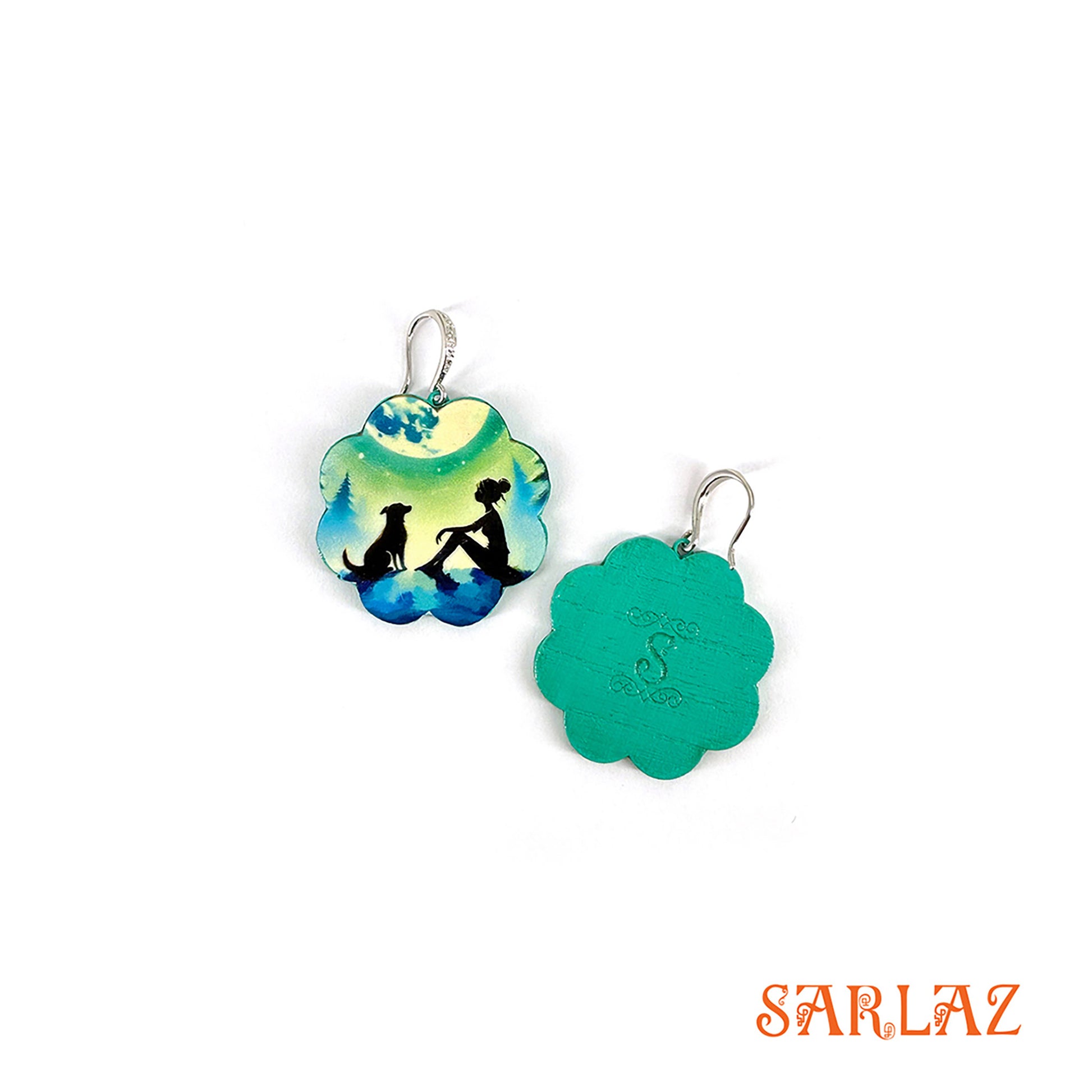 Captured in an eight-petalled frame that ripples like water, a girl and her faithful companion share their evening ritual. The moon watches. The world softens.