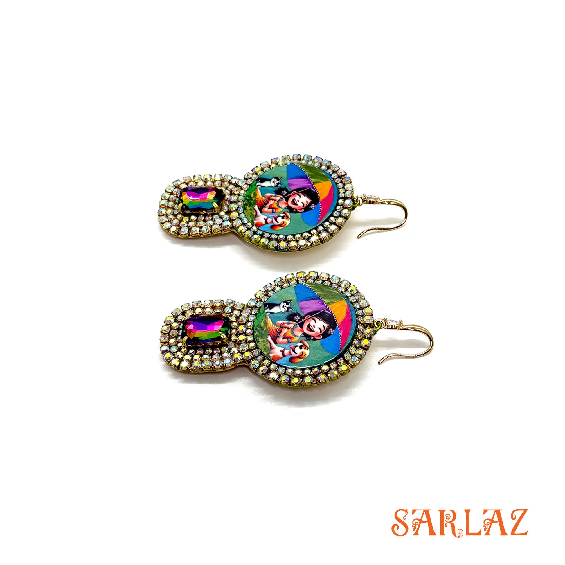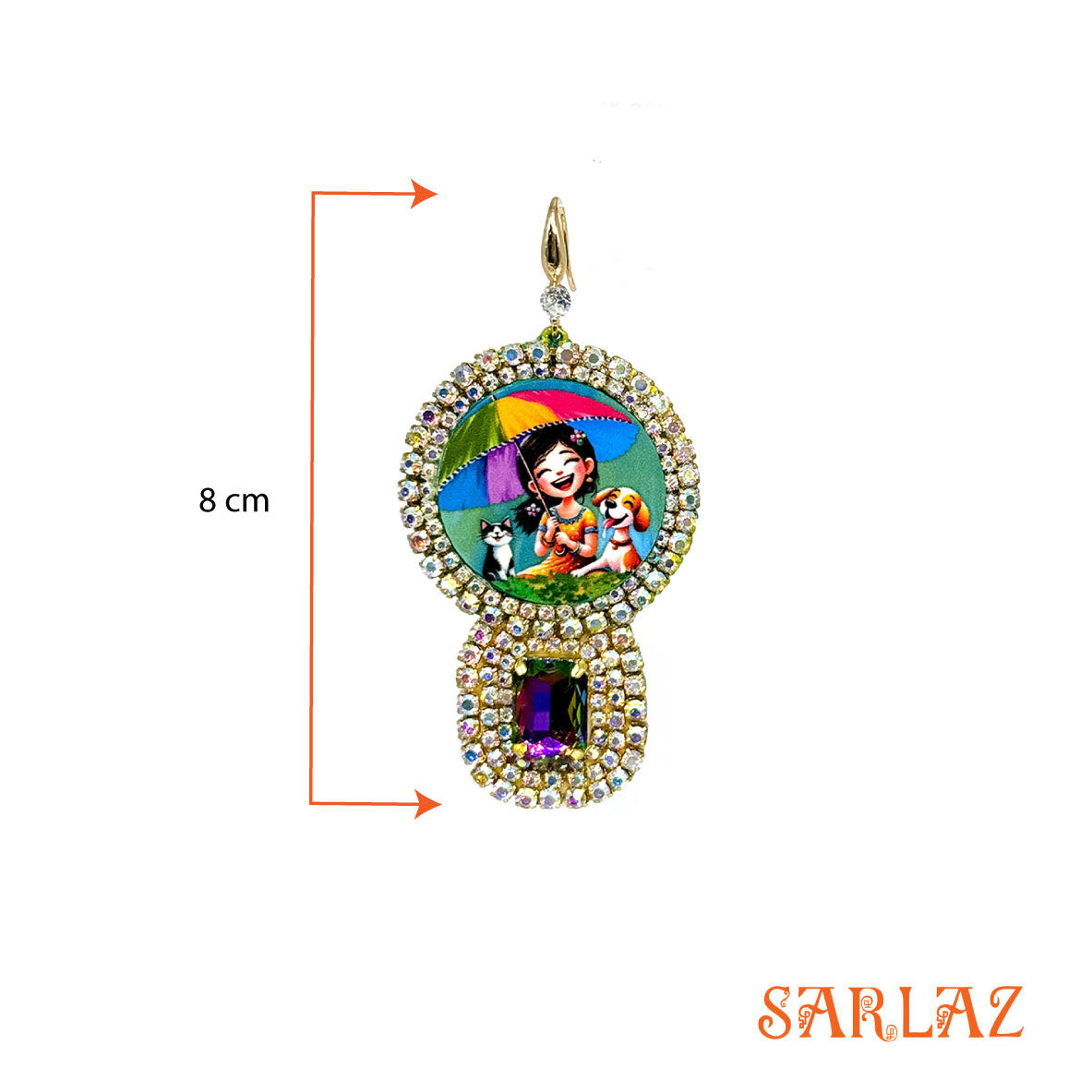 Some moments deserve to be held forever, and here joy spills across miniature canvases painted in vivid colour. A girl throws her head back in laughter while her companions share the delight, all framed in golden circles that gleam like sunlight after rain.