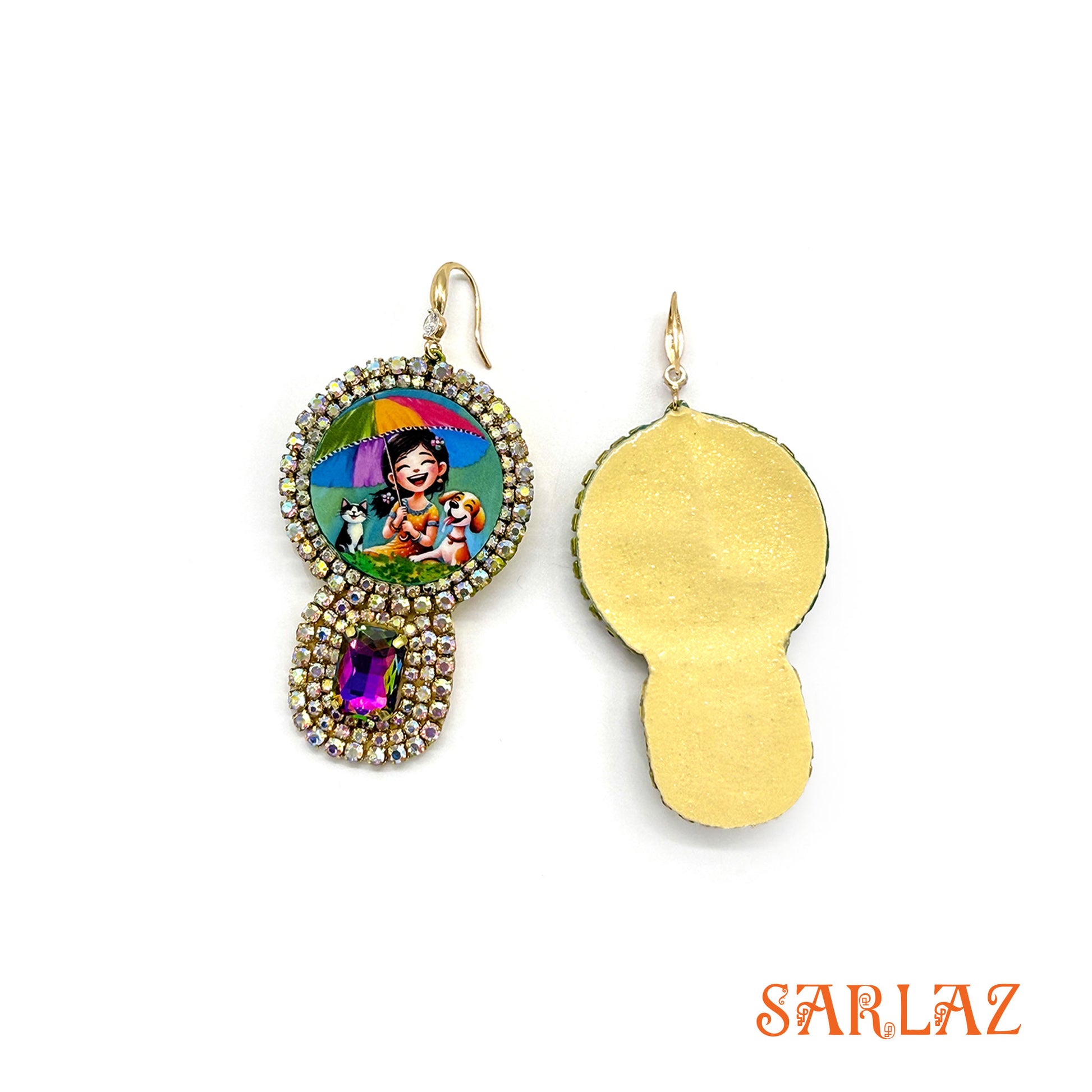 Wood, acrylic colours, rhinestone, finished with a premium gloss varnish.