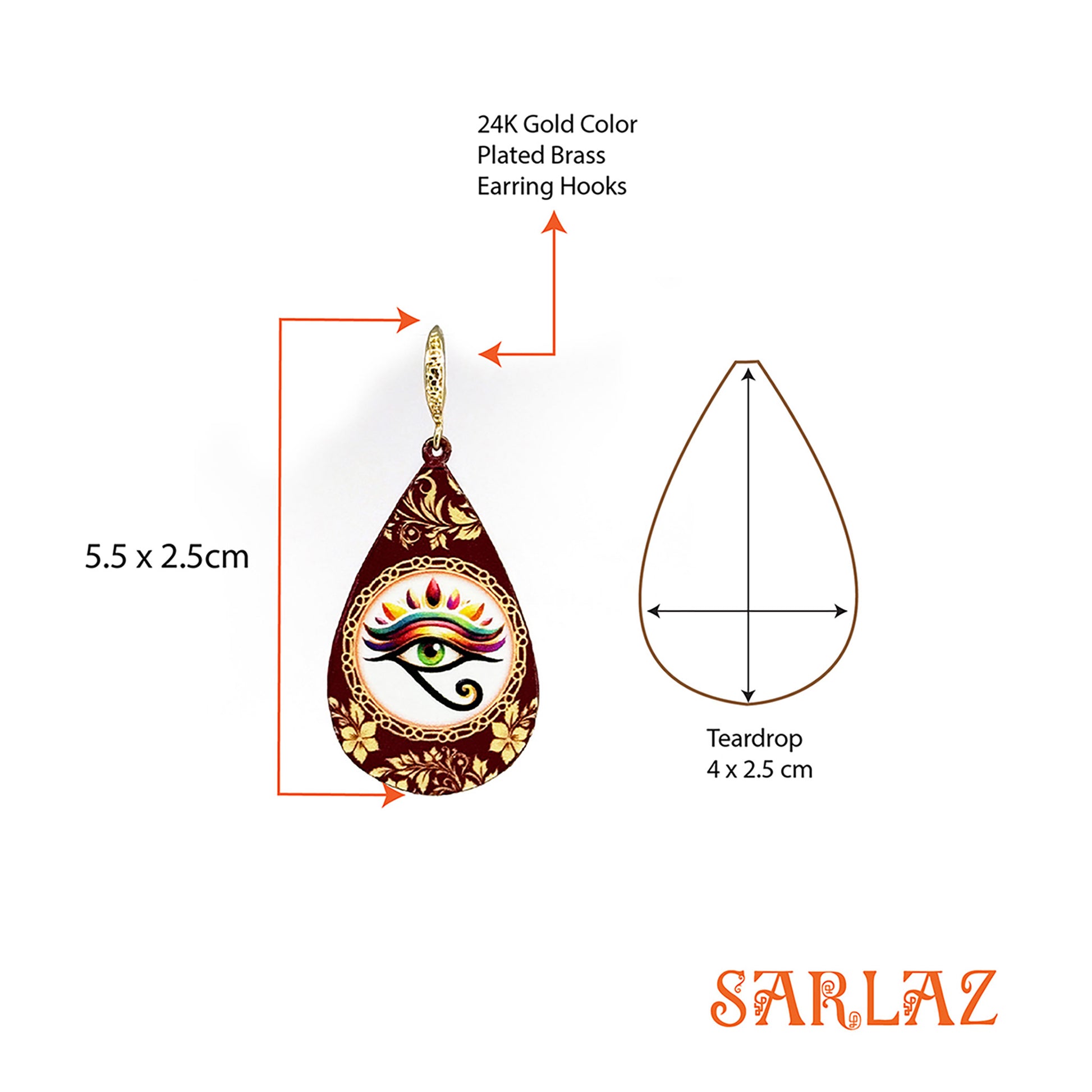 Earring Hook: Hypoallergenic 24K gold colour plated brass.