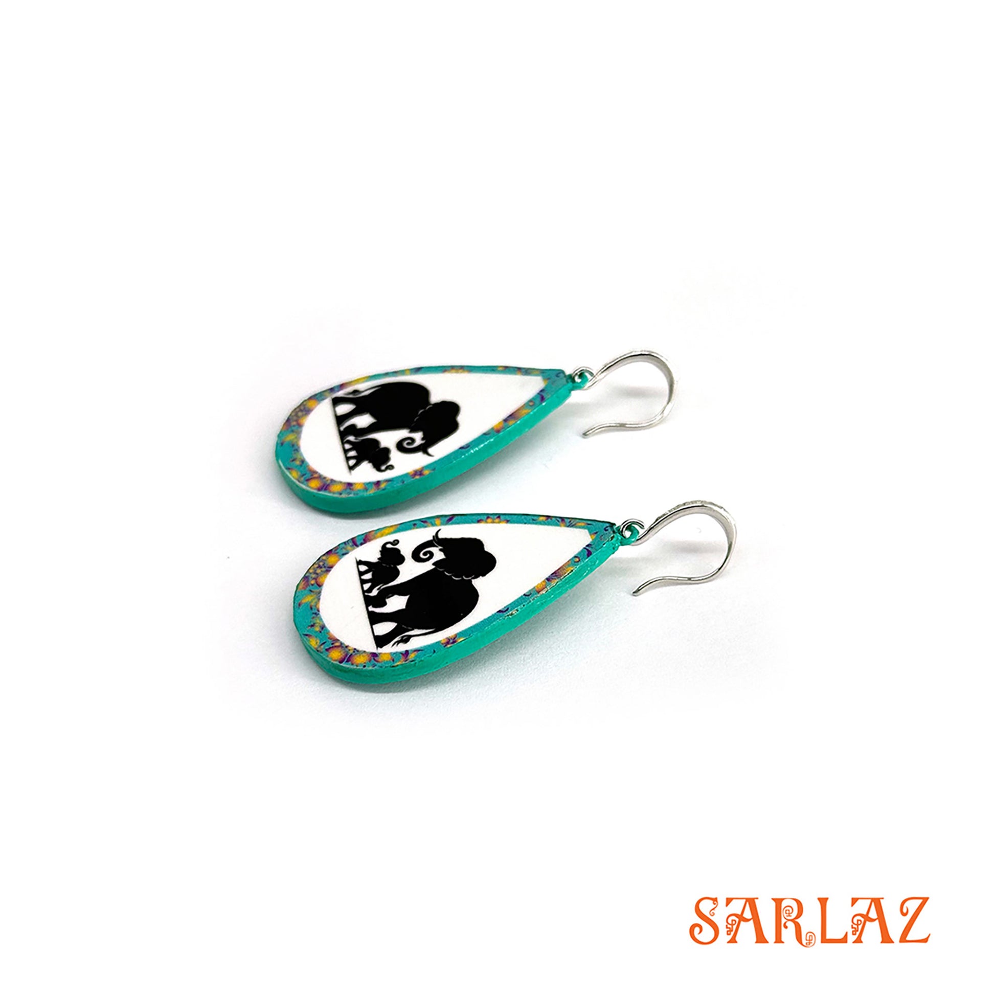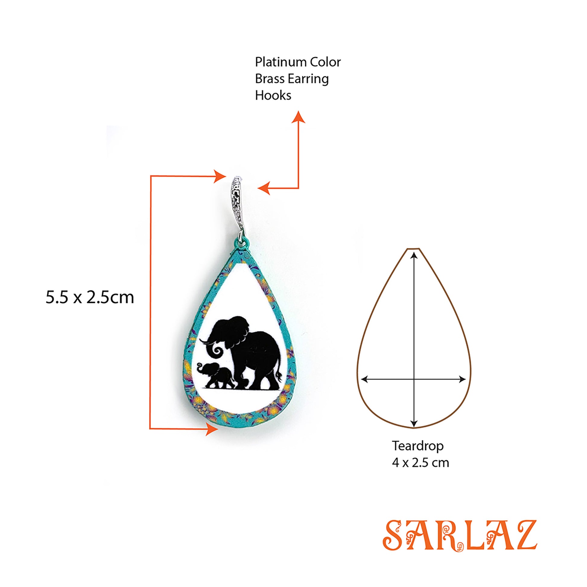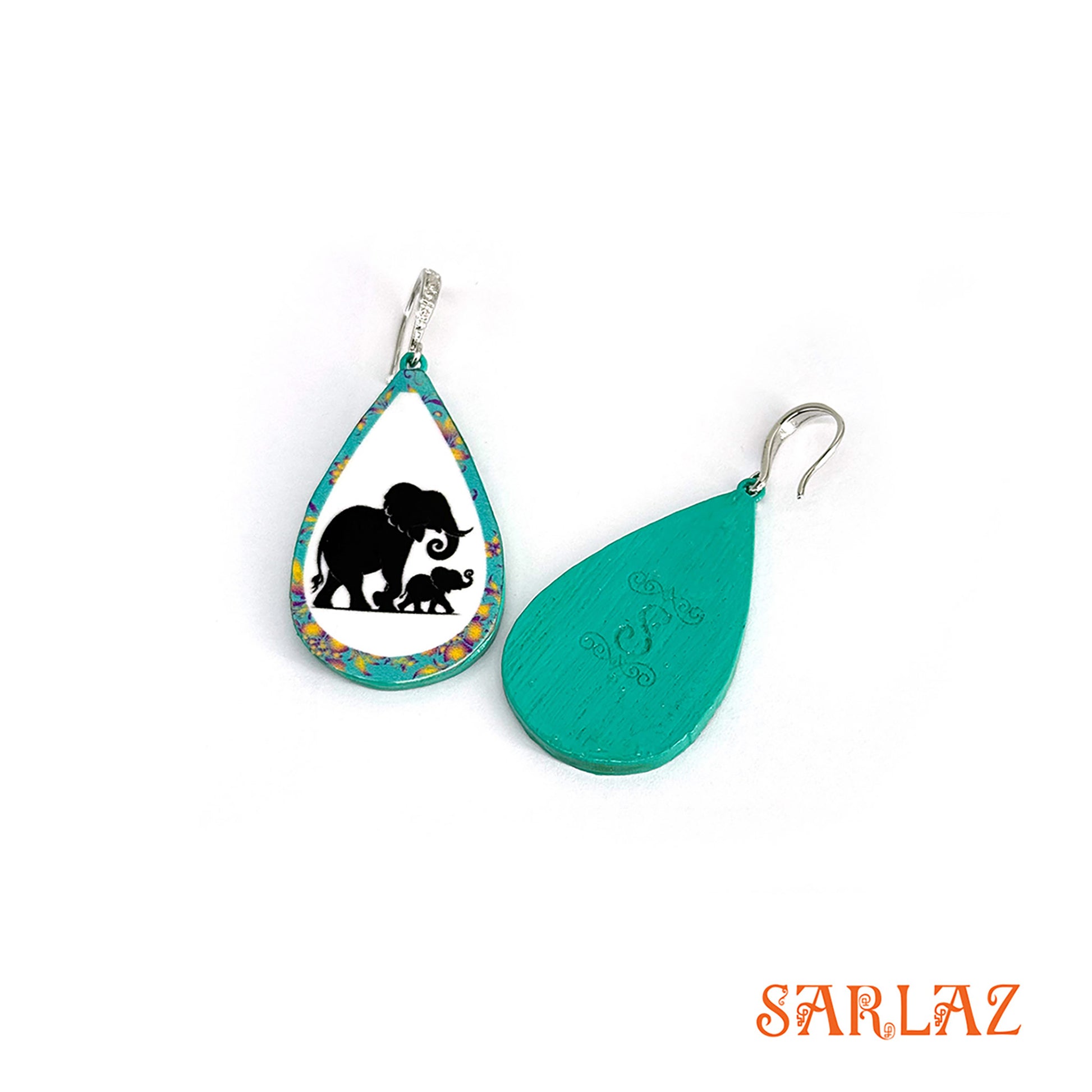 Elephants live by the wisdom of their mothers — their herds are matriarchal, guided by love and memory. In these hand-painted teardrop frames lives that same story: a calf never strays more than a trunk’s length away, the mother follows, watchful.