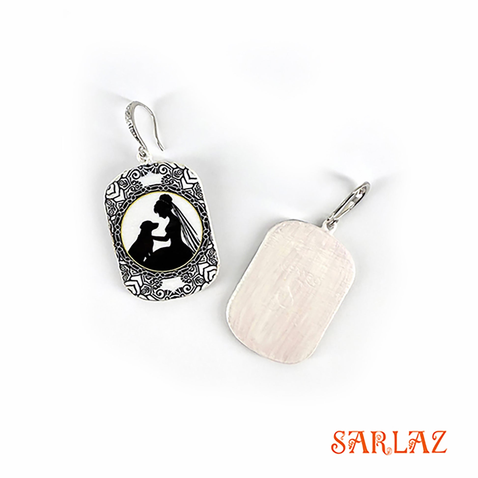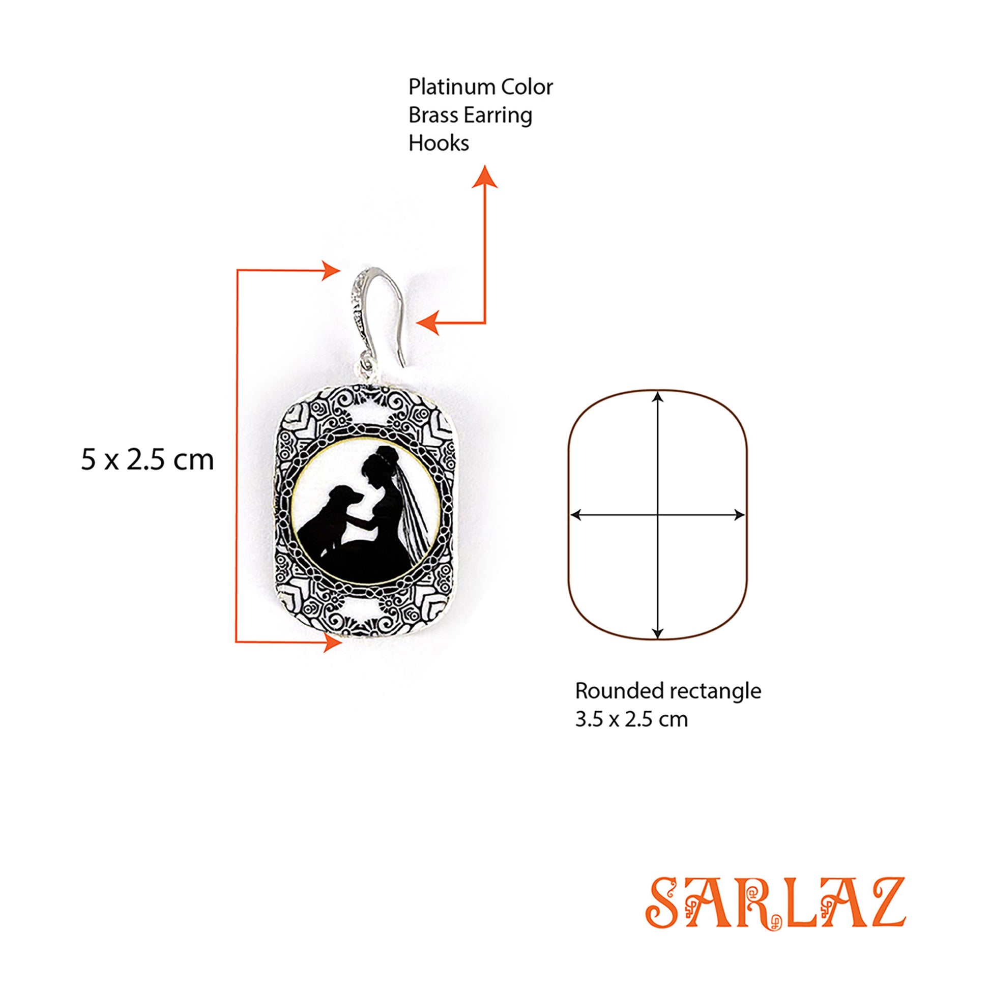 Presented in timeless black and white, this intimate exchange lives within a rounded rectangle dressed in decorative scrollwork. The ornate frame holds space for that whispered conversation between a bride and her faithful soul.